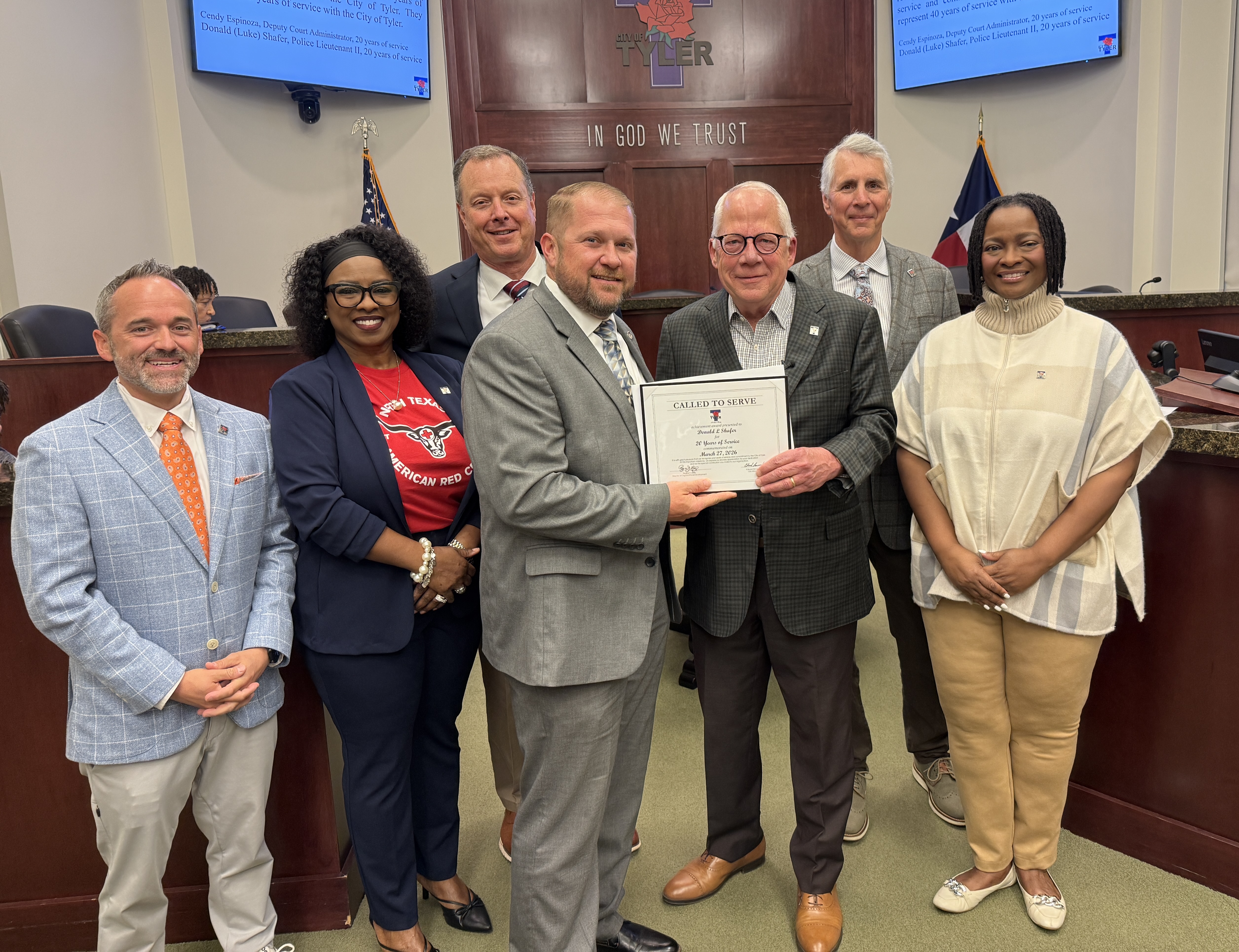 On Wednesday, March 25, the Tyler City Council recognized the following employees for their service and outstanding commitment to the City of Tyler. At this important milestone, the City Council and staff expressed their sincere appreciation for their dedication and special contribution to the organization. These employees represent 40 years of service with the City of Tyler.